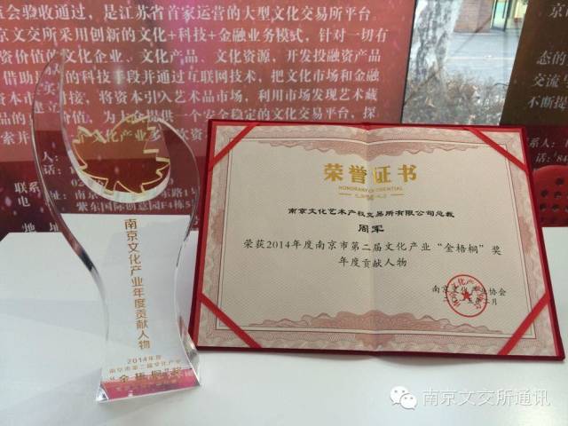 南京文交所总裁周军荣获2014年度“南京文化产业年度贡献人物”
